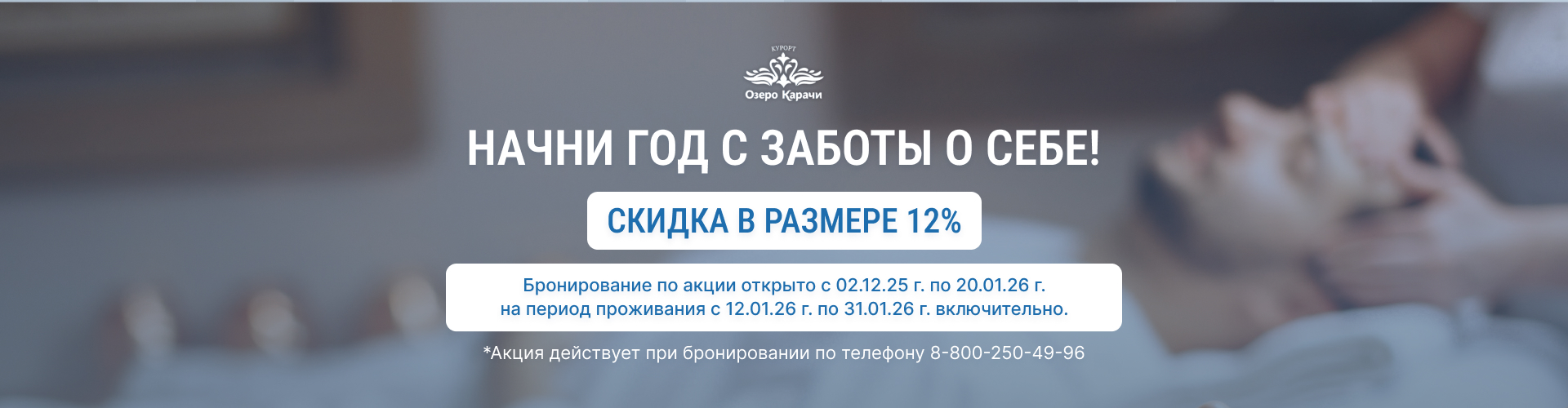 Бронирование по акции «Начни год с заботы о себе!» открыто со 02 декабря 2025 года по 20 января 2026 года на период проживания с 12 января 2026 года по 31 января 2026 года включительно.